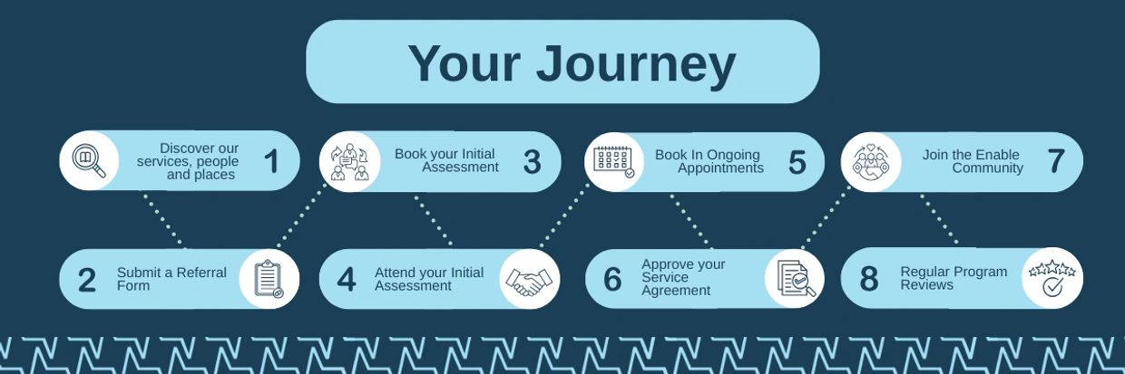 You’re officially part of the Enable Community! From here, we’ll work together on your goals, supporting you to feel safe, strong, fit, and independent. You can connect with us on social media to keep up to date with all our news, updates and celebrations of our clients, attend social events with us, and join in activities like our footy tipping and City to Bay team.